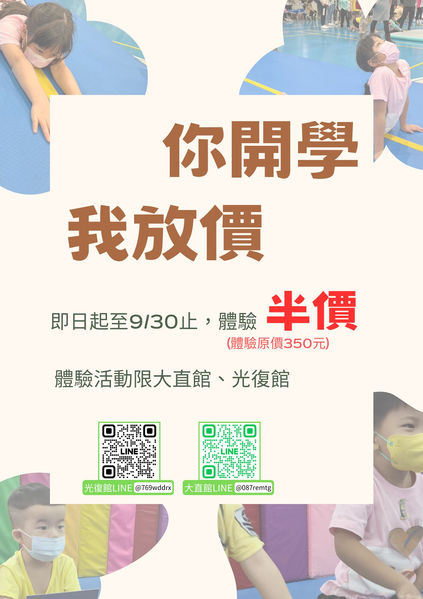 即日起至9/30止,來元氣小熊體驗享半價優惠❗️